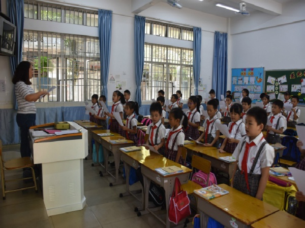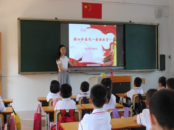 升旗儀式結(jié)束后,各班孩子在班主任的組織帶領(lǐng)下,在課室繼續(xù)進(jìn)行《我和我的祖國》主題班會課。有的班級舉辦“迎國慶朗誦會”,抒發(fā)了他們對祖國的贊美之情,樹立了報效祖國的崇高志向;有的班級開展“祖國知識競答”活動,寓學(xué)于樂,讓學(xué)生在趣味競答中更了解了祖國,從而加深了對祖國的認(rèn)識與熱愛;有的高年級班會由學(xué)生主持,同學(xué)們結(jié)合自身實(shí)例,表達(dá)愛國熱情,講中國故事,夸中國名人,增強(qiáng)了民族自尊心和自豪感。同時,參與活動的教師,身心也受到洗禮。