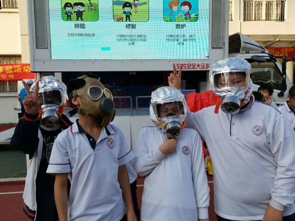 “595安全大篷車”是以特殊改裝的貨車為載體,集舞臺、LED高清顯示屏、燈光音響、互動平臺、體驗(yàn)?zāi)K、運(yùn)輸、智能軟件等為一體的“移動式”科普館。廣東伍玖伍安全文化科技有限公司的宣講老師以“595安全大篷車”為載體,通過四維一體(講解+互動+實(shí)操+演示)的教學(xué)模式,現(xiàn)場開展消防、人防安全宣傳教育,讓同學(xué)們通過聆聽安全知識講座、安全知識互動問答、應(yīng)急用品使用方法演示、自救自護(hù)項目模擬體驗(yàn)等方式,直觀、系統(tǒng)、全面的學(xué)習(xí)安全知識和防護(hù)技能。