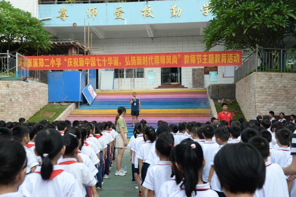 金色的九月丹桂飄香,碩果累累。在這個滿載收獲和喜悅的初秋時節(jié),第35個教師節(jié)悄然而至。為倡導(dǎo)教師為人師表、爭做“四有好教師”,培養(yǎng)學(xué)生尊師重道的美德。9月9日上午,石岐張溪鄭二小學(xué)組織開展了“慶祝新中國七十華誕,弘揚(yáng)新時代尊師風(fēng)尚”的教師節(jié)主題教育活動。