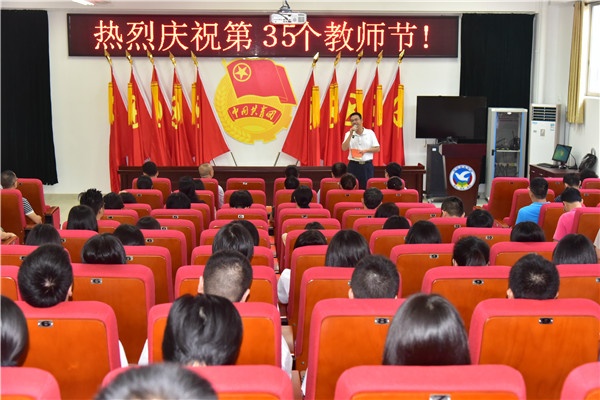 9月9日上午,啟發(fā)中學(xué)開展了慶祝第35個(gè)教師節(jié)活動(dòng)。全校老師齊聚學(xué)校明禮堂,共同慶祝教師節(jié),慶?;顒?dòng)在莊嚴(yán)肅穆的國(guó)歌聲中拉開了序幕,先由學(xué)生代表發(fā)表感念師恩演講,接著由雙人詩朗誦歌頌老師。