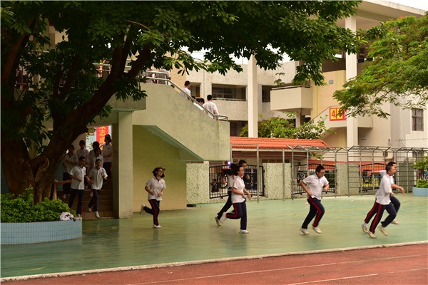 演練開始前,由德育處林容森副校長先作緊急疏散演練前安全教育工作,向全體同學強調(diào)演練的要求,疏散路線和行進中的安全注意事項。