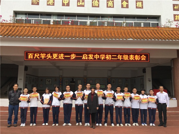 為了給初二級(jí)的同學(xué)們營(yíng)造一個(gè)良好的學(xué)習(xí)氛圍,樹立身邊的榜樣旗幟,定下自己理想的目標(biāo)面對(duì)生地中考。2019年2月27日下午,初二年級(jí)召開了“百尺竿頭更進(jìn)一步”表彰大會(huì)。