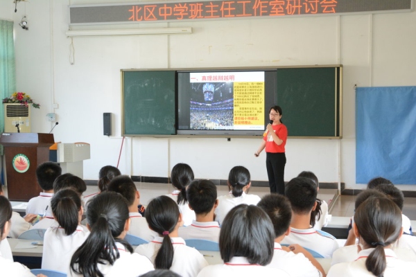 金秋十月,秋高氣爽。10月18日下午,陳杏堅(jiān)班主任工作室的 “旗幟鮮明,潤(rùn)物無(wú)聲”愛(ài)國(guó)主義教育形式研討會(huì)在北區(qū)中學(xué)完美報(bào)告廳舉行。本次活動(dòng)特別邀請(qǐng)了中山市中小學(xué)德育研究與指導(dǎo)中心副主任、石岐區(qū)中小學(xué)德育研究與指導(dǎo)中心主任潘志堅(jiān);石岐區(qū)中小學(xué)德育研究與指導(dǎo)中心成員、啟發(fā)中學(xué)德育處副主任麥水貞蒞臨指導(dǎo)。除陳杏堅(jiān)班主任工作室成員外,北區(qū)中學(xué)德育處黃粱森主任、阮冬瑩副主任、北區(qū)中學(xué)全體班主任級(jí)組長(zhǎng)、石岐中學(xué)班主任工作室團(tuán)隊(duì)、啟發(fā)中學(xué)班主任工作室團(tuán)隊(duì)成員共聚一堂,開(kāi)展了班主任工作經(jīng)驗(yàn)交流座談。