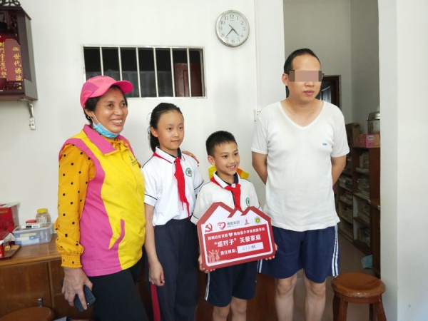 啟動儀式結(jié)束后,各班級代表在社區(qū)工作人員、愛心志愿服務隊的帶領下,開展第一次慰問活動,并為各個家庭掛上關愛牌。
