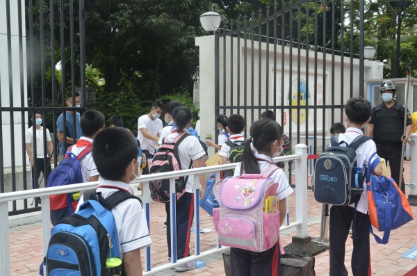 “同學(xué)們?cè)缟虾茫g迎回校!” 學(xué)校行政、值日教師在校門口熱情迎接返校的“萌娃們”!在學(xué)校教師、家長(zhǎng)義工隊(duì)的引導(dǎo)下,同學(xué)們邁著輕快的步伐,按照學(xué)校德育處的《返校復(fù)學(xué)一日常規(guī)》的培訓(xùn)指引和墻面標(biāo)識(shí),在相應(yīng)的年級(jí)通道間隔1米排隊(duì),經(jīng)測(cè)量體溫、消毒雙手后,有序進(jìn)入校園。一個(gè)個(gè)小身影有序前進(jìn)。教室門口,老師們帶著欣喜與期待相迎,他們?yōu)橥瑢W(xué)們進(jìn)行晨檢——消毒雙手、復(fù)測(cè)體溫,守好校園防疫的每一道防線。終于又坐在期盼已久的教室中,孩子們的臉上難掩雀躍之情!