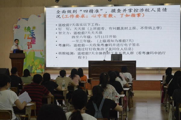 5月8日,學(xué)校召開(kāi)《關(guān)于做好疫情防控及學(xué)生返校準(zhǔn)備工作》教師大會(huì),孫校長(zhǎng)動(dòng)員全體教師要認(rèn)真做好學(xué)生返校準(zhǔn)備各項(xiàng)工作。她表示,省、市各級(jí)黨政部門高度重視、聯(lián)防聯(lián)控并做好了總體的部署,學(xué)校全體教職工一定要認(rèn)真落實(shí),將返校工作做得更實(shí)更細(xì)。學(xué)校全面關(guān)愛(ài)教師身心健康,指導(dǎo)教師關(guān)注、落實(shí)心理建設(shè)。孫校長(zhǎng)在會(huì)上再次向老師們強(qiáng)調(diào),要認(rèn)真學(xué)習(xí)5月6日下午學(xué)校心理專職教師在《教師心理健康及自我調(diào)適》培訓(xùn)中提及到的《中山市中小學(xué)疫情防控下返校心理建設(shè)指引》等心理健康教育文件,做好教師、學(xué)生、家長(zhǎng)三方面的心理調(diào)適,用平和的心態(tài)迎接返校復(fù)學(xué)。