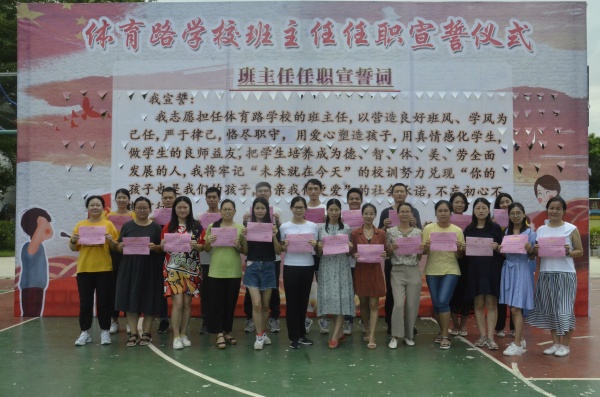 為引導全校教師崇德向善,鑄造新時代師德、師風、師魂,在9月2日的開學典禮上,學校舉行班主任任職宣誓儀式。全體正副班主任面對國旗莊嚴宣誓,繼續(xù)努力兌現(xiàn)“您的孩子也是我們的孩子,您親我們更愛”的社會承諾。鏗鏘的誓言使每一位教師都時刻牢記教書育人的工作職責。
