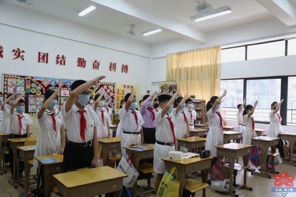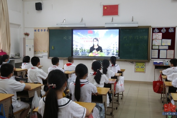 一場(chǎng)朝雨送來(lái)無(wú)邊清爽,室內(nèi)升旗儀式莊嚴(yán)肅穆,長(zhǎng)期未見(jiàn)的輔導(dǎo)員和少先隊(duì)員們?cè)俅喂餐宕骱眉t領(lǐng)巾,整齊地面向五星紅旗鄭重敬禮,場(chǎng)面感人。升旗儀式后,依據(jù)學(xué)校疫情防控工作安排,開(kāi)學(xué)典禮采用了非集中方式,通過(guò)校園高清電視直播網(wǎng)絡(luò)于各班教室同步舉行。典禮由孫慧濤副校長(zhǎng)主持,歡迎詞熱情洋溢,石岐中心小學(xué)大信學(xué)校2019學(xué)年度第二學(xué)期“齊心抗疫 靜待花開(kāi)”主題直播開(kāi)學(xué)典禮開(kāi)幕。