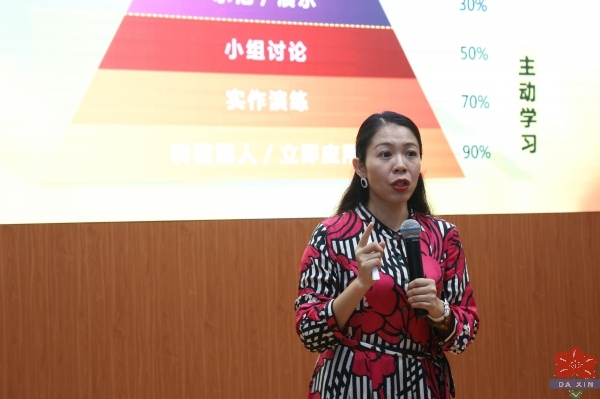 會議開始,大信學(xué)校孫慧濤副校長主持會議,孫副校長首先介紹了本次培訓(xùn)邀請的專家,華南師范大學(xué)心理學(xué)、西南大學(xué)學(xué)前教育學(xué)士,著名心理專家——謝玉婷女士。接著,優(yōu)雅知性的謝老師便走上講臺,闡述了有關(guān)正面管教的知識。