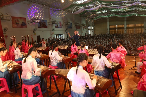 民樂是中國音樂的重要組成部分,劉雪映老師指揮著校民樂團的孩子們?yōu)橛^眾們獻上了合奏《茉莉花》、《金蛇狂舞》。古箏、揚琴、琵琶、二胡和若干打擊樂器在孩子們的演奏下,和諧而又動聽。身著古典服裝的孩子們在劉老師的指揮下,輕攏慢捻、提拉勾彈、擂敲捶打,盡展民樂的魅力!