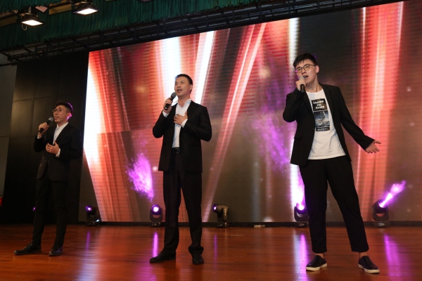 “……新時代的號角中再一次出發(fā)……追夢的人們雄姿英發(fā)……”,雄渾的氣勢,高亢的歌聲,這是陳晉寧、田中陽、李鴻鍔老師表演的教師三重唱《再一次出發(fā)》。三個聲部的精心配合,讓聽眾們熱血沸騰,豪情滿懷!
