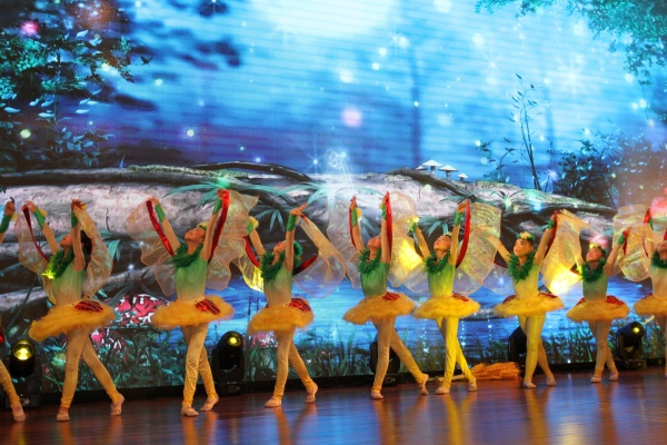 緊接著是歌伴舞《夢樂園》?!拔覀兌加袑儆谧约旱膲粝?每一個夢想散發(fā)著光芒……”優(yōu)美的舞姿,動聽的歌聲,將大信學校變成個了一個大樂園,每一個孩子都在這個樂園里編織著夢想。