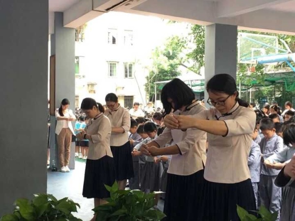 9月28日是一個(gè)特殊的日子,是我國(guó)偉大的思想家、教育家、儒家學(xué)派創(chuàng)始人至圣先師孔子誕辰2569周年紀(jì)念日,也是博愛(ài)小學(xué)全體老師的教師節(jié),為倡導(dǎo)經(jīng)典文化的回歸,弘揚(yáng)中華尊師重教的傳統(tǒng)美德,感受古代與現(xiàn)代教師節(jié)不同氛圍,博愛(ài)小學(xué)全體師生及家長(zhǎng)代表于早上8:30分,聚集學(xué)校大堂,舉行“習(xí)華夏禮樂(lè),傳圣賢智慧” 釋菜禮活動(dòng)。
