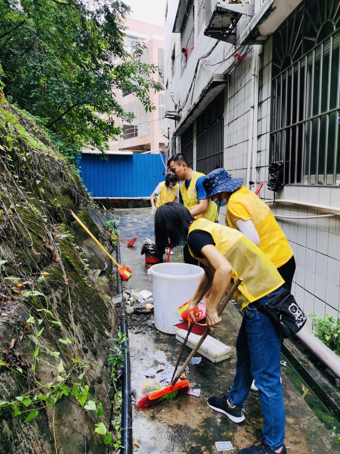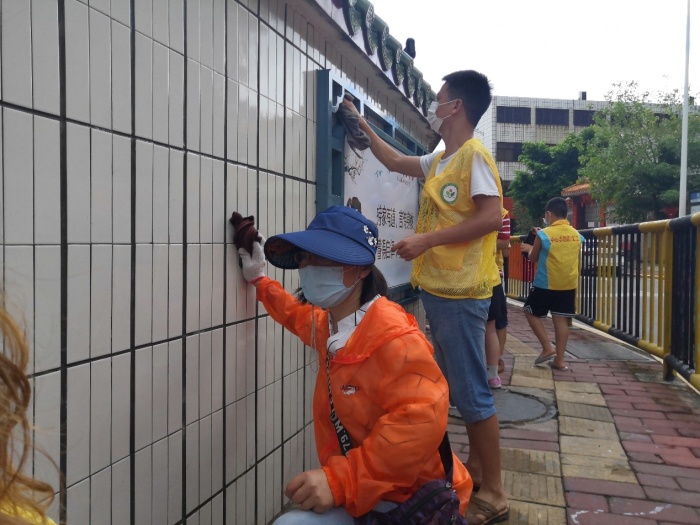 早上8:30分,年級組長先對活動進行了細致分工,然后馬上行動起來。在開發(fā)區(qū)華潤萬家、頤景新城以及明珠長廊,隨處可見身穿黃馬甲志愿者忙碌的身影。他們手拿抹布、掃把,拎著水桶、簸箕等勞動工具,分組包片協(xié)作,有的負責擦拭道路兩旁的文明標語牌;有的沿著道路兩側(cè),清掃、撿拾角落、綠化帶里的煙頭、紙屑等垃圾;有的手拿鏟子費力地一點點地清除墻面“牛皮癬”……同時,志愿者們走進沿街商鋪,開展文明城市宣傳、勸導(dǎo)工作,以各種形式助力中山市創(chuàng)建文明城市。