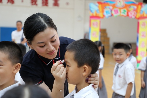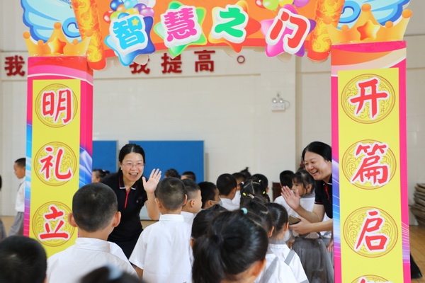 活動(dòng)最為精彩是是“入學(xué)拜師”環(huán)節(jié)。在老師的帶領(lǐng)下,一年級(jí)新生雙手作揖行禮。首先“拜孔子”,追思先賢,認(rèn)真學(xué)習(xí)和踐行古代儒家經(jīng)典;然后“拜老師”,感恩老師辛勤付出。隨后,老師們?yōu)樾律c(diǎn)上“朱砂點(diǎn)”,祝愿新生從此聰明好學(xué)、智慧過人。最后,在老師們的帶領(lǐng)下,新生們走過“智慧之門”并與學(xué)校領(lǐng)導(dǎo)擊掌慶賀,寓意新生們即將在香小的關(guān)懷下踏入知識(shí)的殿堂,開啟新的智慧之旅。