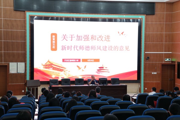 香暉園小學(xué)副校長(zhǎng)劉裕作師德師風(fēng)主題講座,詳細(xì)解讀了教育部發(fā)布的《關(guān)于加強(qiáng)和改進(jìn)新時(shí)代師德師風(fēng)建設(shè)的意見》,剖析了種種不良教育現(xiàn)象,以此為警鐘,強(qiáng)調(diào)師德是教育之魂,要求全體教師切實(shí)履行職責(zé),干好本職工作,規(guī)范教育行為。