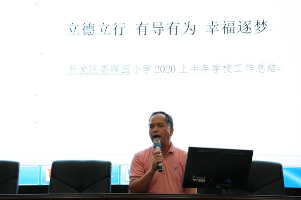 香暉園小學(xué)校長(zhǎng)陳澤湖作《立德立行 有導(dǎo)有為 幸福逐夢(mèng)》為主題的2020學(xué)年上半年學(xué)校工作總結(jié)。陳校長(zhǎng)從黨紀(jì)師風(fēng)建設(shè)、組織建設(shè)、教學(xué)管理、課程研究、課題建設(shè)、家校聯(lián)動(dòng)及線上線下教學(xué)六方面聚焦亮點(diǎn),并針對(duì)目前存在的問題進(jìn)行了分析和思考。他指出,教育就是引領(lǐng)孩子走一條健康的、有為的、有價(jià)值的人生之路,學(xué)校猶水,師生猶魚,大魚前導(dǎo),小魚尾隨,強(qiáng)調(diào)教師的責(zé)任之大,鼓勵(lì)教師聚焦重點(diǎn),深耕細(xì)作,推動(dòng)香小關(guān)懷教育向高質(zhì)量發(fā)展不斷前進(jìn)。