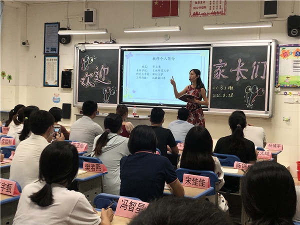 本次家長(zhǎng)會(huì)在校領(lǐng)導(dǎo)和年級(jí)組長(zhǎng)的帶領(lǐng)下,一年級(jí)12位班主任準(zhǔn)備了詳實(shí)的發(fā)言,并對(duì)教室做了精心布置,黑板上或?qū)懼鴼g迎家長(zhǎng)的標(biāo)語(yǔ),或畫著溫馨的圖畫,使各位家長(zhǎng)一走進(jìn)教室就能感受到融洽、和諧的氛圍。晚上7:30前,新生家長(zhǎng)陸續(xù)到達(dá)各班教室參加家長(zhǎng)會(huì)。為進(jìn)一步幫助孩子盡快適應(yīng)學(xué)校生活,幫助家長(zhǎng)掌握正確的教育方法,讓家長(zhǎng)有效地與學(xué)校、老師合作,使學(xué)生養(yǎng)成良好的行為習(xí)慣,各班主任和科任老師從一年級(jí)新生身心發(fā)展特點(diǎn)出發(fā),從“基本準(zhǔn)備、習(xí)慣準(zhǔn)備、心理準(zhǔn)備”三方面給家長(zhǎng)提出了建議,強(qiáng)調(diào)孩子良好習(xí)慣的養(yǎng)成,讓孩子能夠平穩(wěn)、有序地過(guò)渡到小學(xué)階段的學(xué)習(xí)生活中來(lái)。