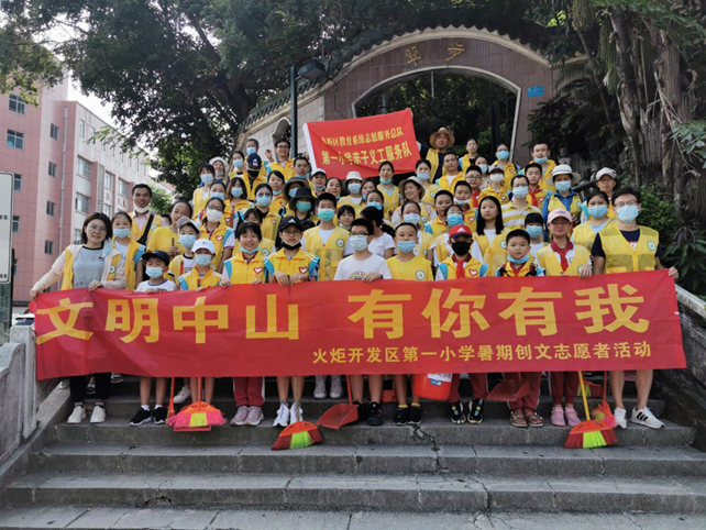 一抹抹黃色的身影,在一次次奉獻(xiàn)中,悄然播下了文明的種子,擦亮了城市文明的“底色”。奉獻(xiàn)、友愛(ài)、互助、進(jìn)步,這個(gè)暑假,開(kāi)發(fā)區(qū)第一小學(xué)師生們身體力行詮釋了這八個(gè)字。文明城市,你我共建。用愛(ài)溫暖一座城,滿(mǎn)城盡開(kāi)文明花。中山,因志愿者的付出更美麗,因大家的奉獻(xiàn)更美麗!