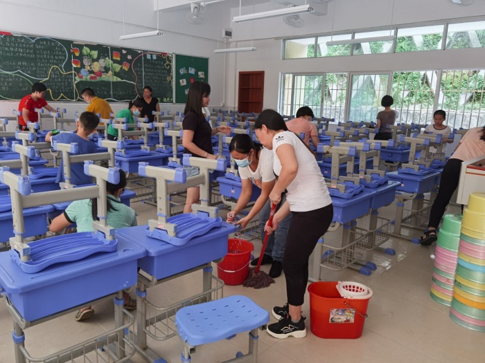 活動(dòng)中,老師和家長(zhǎng)們分工明確、配合默契,把校園打掃得窗明幾凈,讓各個(gè)教室從布滿灰塵到一塵不染。家長(zhǎng)和學(xué)生志愿者對(duì)教室進(jìn)行了全面清掃,窗戶、桌椅、走廊、樓梯等各處打掃得干干凈凈,真正做到全覆蓋、無(wú)遺漏、零死角。老師們用消毒液浸泡過(guò)的拖把將教室進(jìn)行全面擦拭消毒,用配置好的消毒水對(duì)教室桌椅、講臺(tái)、儲(chǔ)物柜、窗臺(tái)等物品進(jìn)行擦拭消毒,并開(kāi)窗通風(fēng)半小時(shí)。