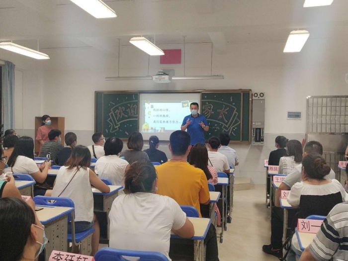 為了幫助一年級新生盡快適應(yīng)學(xué)校生活,培養(yǎng)良好的行為習(xí)慣,使家長有效地與學(xué)校、老師溝通,學(xué)校于8月30日晚上舉行了一年級新生家長會。此次家長會在各自班級舉行,8個班級走過去座無虛席,家長參會率高。各班班主任和科任老師從作息時間、行為習(xí)慣、入學(xué)準(zhǔn)備、注意事項等方面與家長進(jìn)行了深入的交流。學(xué)校劉光旗校長參與家長會并發(fā)表了熱情洋溢的講話。劉校長首先向新一年級家長們的到來表示歡迎,接著從家庭教育中父母的榜樣作用、孩子學(xué)習(xí)習(xí)慣的培養(yǎng)、關(guān)注孩子心理健康、鼓勵發(fā)掘孩子的優(yōu)勢和閃光點等方面向家長提出了建設(shè)性意見。