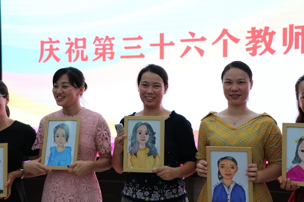 伴隨優(yōu)美的旋律,學(xué)生代表上臺(tái)為每一位老師獻(xiàn)上一份最特別的禮物——個(gè)人畫像。據(jù)悉,該校美術(shù)科組在活動(dòng)籌備階段,積極組織社團(tuán)學(xué)生為全校老師繪制畫像,經(jīng)過一個(gè)多星期的緊張籌備,一張張動(dòng)人的倩影定格在畫面上,畫像被裝進(jìn)精美的相框,在活動(dòng)現(xiàn)場(chǎng)送給老師。收到這份特別禮物的老師們臉上都洋溢著幸福的笑容。