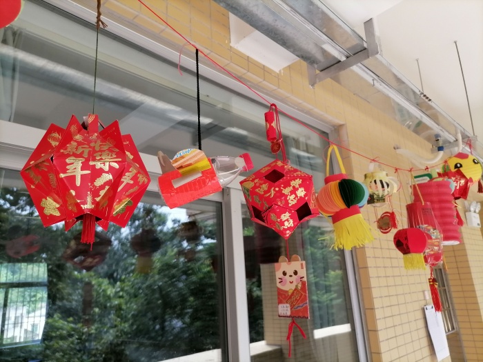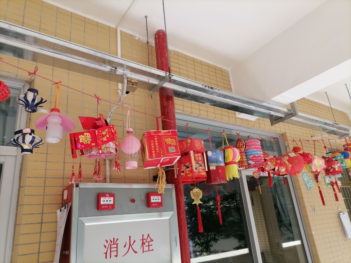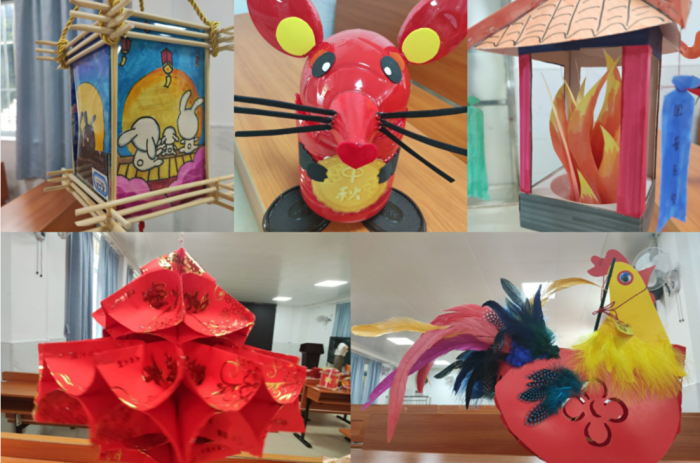 看到班級(jí)高高掛起的一串串色彩鮮艷的燈籠,就能感受到孩子們和家長(zhǎng)齊心協(xié)力、集思廣益、用心制作。從孩子們?cè)O(shè)計(jì)的作品中可以看出,都是利用生活中一些未加工的廢舊物品如:紙盒、瓶蓋、冰棒棍、飲料罐、毛線、利是封等,通過(guò)剪、貼、涂、繞等技巧,制作成各種形狀的燈籠。