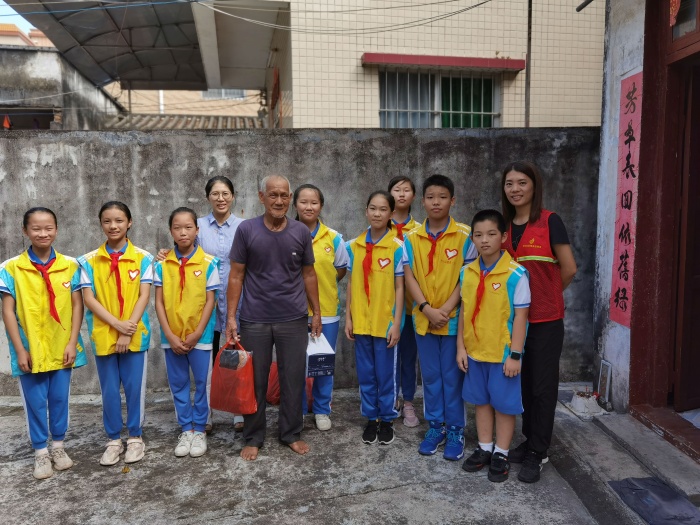 中午,由學(xué)校黨支部、少工委聯(lián)合城東社區(qū)關(guān)工委,對(duì)社區(qū)的殘疾人、孤寡老人開展慰問活動(dòng)。當(dāng)老人們從隊(duì)員們的手中接過慰問品時(shí),臉上都洋溢出燦爛的笑容。隊(duì)員們還跟老人們談心,叮囑他們保重身體,照顧好自己的生活,并預(yù)祝他們節(jié)日快樂。