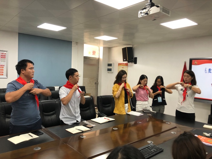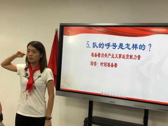 此次培訓(xùn)由大隊(duì)輔導(dǎo)員阮結(jié)連老師主講,阮結(jié)連老師從“了解少先隊(duì)知識(shí)”、“少先隊(duì)基礎(chǔ)禮儀”、“迎國(guó)慶,賀中秋活動(dòng)安排”三個(gè)方面進(jìn)行講述。少先隊(duì)禮儀是輔導(dǎo)員的基本功,對(duì)隊(duì)員的指導(dǎo)能力體現(xiàn)了一名輔導(dǎo)員的專業(yè)性。在學(xué)習(xí)少先隊(duì)禮儀的這個(gè)環(huán)節(jié),輔導(dǎo)員們進(jìn)行學(xué)習(xí)和操練,每一個(gè)細(xì)節(jié)都反復(fù)推敲,直到熟練掌握。只有輔導(dǎo)員掌握了少先隊(duì)禮儀,才能進(jìn)一步指導(dǎo)隊(duì)員去規(guī)范和使用。本次少先隊(duì)知識(shí)的學(xué)習(xí)讓參加培訓(xùn)的輔導(dǎo)員們更加深入地了解了少先隊(duì)的歷史,同時(shí)感受到了黨和國(guó)家十分重視少先隊(duì)工作,意識(shí)到了作為一名中隊(duì)輔導(dǎo)員的重要意義。