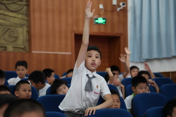 活動由學(xué)校大隊(duì)輔導(dǎo)員杜沁源老師主持。杜老師首先介紹了此次活動流程,并對領(lǐng)導(dǎo)嘉賓的到來表示熱烈歡迎。隨后,劉榮娟檢察官為同學(xué)們作了題為《法律是什么》的主題講座,她從法律的詞源和詞義、法律的特征、法律思維的養(yǎng)成三方面詳細(xì)講解,從“法”字的繁體字說起,分析“法”字的結(jié)構(gòu),用講故事的形式,生動地向孩子們介紹了何為法律。會上,劉檢察官循循善誘,用小故事引發(fā)學(xué)生思考,通過一個(gè)個(gè)問題引導(dǎo)學(xué)生逐步分析,并和在場同學(xué)們熱情互動。孩子們積極回答,踴躍發(fā)言。劉檢察官耐心引導(dǎo),認(rèn)真傾聽回應(yīng),還深情講述了自己在檢察官崗位上,面對未成年犯罪人員時(shí)的痛心和無奈。