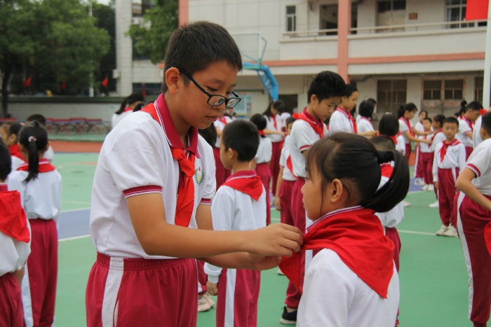 為了繼承與弘揚(yáng)中國少年先鋒隊(duì)的光榮傳統(tǒng),明確作為一名少先隊(duì)員的使命感、責(zé)任感,激勵他們從小樹立遠(yuǎn)大理想,勤奮學(xué)習(xí)、快樂生活,成為全面發(fā)展的合格少年。開發(fā)區(qū)第一小學(xué)二年級的全體師生、其他年級部分同學(xué)齊聚嶄新的操場舉行隆重的少先隊(duì)入隊(duì)儀式。