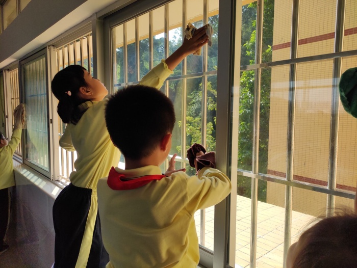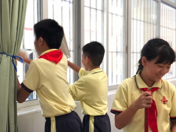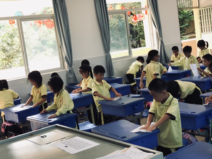為了讓課室和各個(gè)功能室有一個(gè)干凈的環(huán)境,同學(xué)們干起活來(lái)干勁十足。在班主任的指引下分工明確,同學(xué)們團(tuán)結(jié)協(xié)作,有的拿起掃把清理課室垃圾,有的拿著抹布和地拖清理窗戶(hù)和走廊,每個(gè)同學(xué)都非常賣(mài)力,尤其是低年級(jí)的小同學(xué),雖然他們年紀(jì)較小,但是干起活來(lái)一點(diǎn)都不怕累。由于進(jìn)行了加固工程,課室里的灰塵和雜物特別多,負(fù)責(zé)室場(chǎng)的老師也認(rèn)真地打掃衛(wèi)生。除了整理課室和功能室物品外,同學(xué)們還對(duì)校園里的每一個(gè)角落都進(jìn)行仔細(xì)的清潔,做到不留衛(wèi)生死角,校園內(nèi)到處呈現(xiàn)著熱火朝天的勞動(dòng)景象。經(jīng)過(guò)師生們的不懈努力,校園面貌煥然一新。坐在嶄新干凈整潔的辦公室和課室,師生們都露出滿(mǎn)意的笑臉。