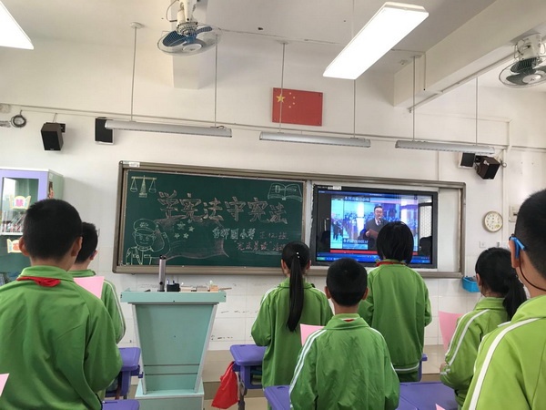 憲法宣傳周期間,學(xué)校舉行了憲法宣傳教育啟動(dòng)儀式,召開(kāi)全體教師動(dòng)員大會(huì),要求全體教師從思想上高度重視憲法知識(shí)的普及和宣傳,做好學(xué)生學(xué)法、知法、守法、護(hù)法的帶頭人。學(xué)校利用集會(huì)、黑板報(bào)和LED電子屏等途徑積極宣傳憲法知識(shí),營(yíng)造了濃郁的法治宣傳氛圍,打造法治校園環(huán)境。學(xué)校還依托《道德與法治》等相關(guān)課程,著力加強(qiáng)體驗(yàn)式實(shí)踐式教學(xué),切實(shí)提升憲法教育的針對(duì)性和實(shí)效性;學(xué)校在高年級(jí)開(kāi)展了模擬法庭活動(dòng),進(jìn)一步推動(dòng)了憲法教育,著力培育了學(xué)習(xí)憲法、尊崇憲法的校園法治文化;同學(xué)們回家和爸爸媽媽一起進(jìn)行“學(xué)憲法講憲法”網(wǎng)上學(xué)習(xí)活動(dòng),讓?xiě)椃ㄗ哌M(jìn)千家萬(wàn)戶,提高全民的法制意識(shí)。