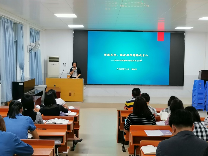 分享會由德育主任藍(lán)佩賢主持,藍(lán)主任先分享在中山市師德培訓(xùn)者培訓(xùn)學(xué)習(xí)的感想,從師德的新挑戰(zhàn)出發(fā),同時引導(dǎo)大家從學(xué)生的發(fā)展、社會的需要的角度思考到底我們需要怎樣的老師,再從分享教育小故事,引導(dǎo)大家要做一個有溫度的老師,傳遞關(guān)懷,新時代師德代言人。
