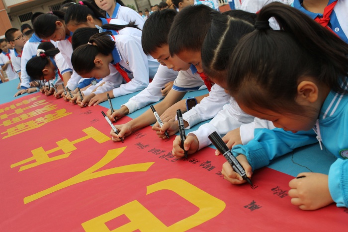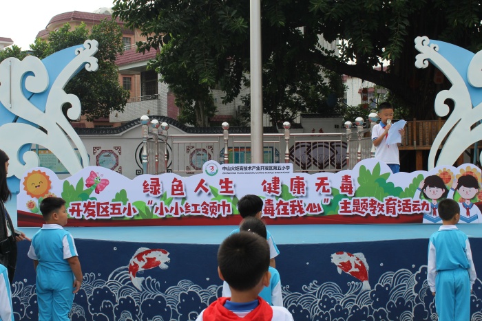 活動(dòng)在莊嚴(yán)的國(guó)歌聲中拉開(kāi)序幕。五(4)中隊(duì)的翁俊宇同學(xué)用列數(shù)據(jù)和具體案例向全體師生介紹目前毒品對(duì)青少年的危害情況,并指出當(dāng)前隊(duì)員們正處于生理和心理的成長(zhǎng)期和突變期,容易在空虛無(wú)聊、情緒低落、遇到挫折的時(shí)候受到毒品的侵害,呼吁全體師生要認(rèn)清毒品的危害,自覺(jué)主動(dòng)拒絕毒品,不以好奇心為由僥幸嘗試。同時(shí),要樹(shù)立正確的人生觀,不盲目追求享受,尋求刺激,趕時(shí)髦、攀比,增強(qiáng)抵抗力。隨后,全體師生在學(xué)校大隊(duì)輔導(dǎo)員阮結(jié)連的帶領(lǐng)下宣誓:珍惜美好年華,從我做起,從現(xiàn)在做起,從杜絕吸煙做起,終身遠(yuǎn)離毒品、拒絕毒品。各中隊(duì)代表在“健康人生,綠色無(wú)毒”橫幅上簽名,表決心——珍愛(ài)生命,遠(yuǎn)離毒品。