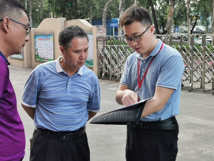 12月10日,中山市督學、區(qū)教育事務指導中心教研員張立超老師到新苗學校進行校園安全和常態(tài)化疫情防控專項督導。新苗學校校長朱德友、副校長兼學校教育督導員鄒麗、副校長段岳華、德育處主任黃俊等學校行政全程陪同。