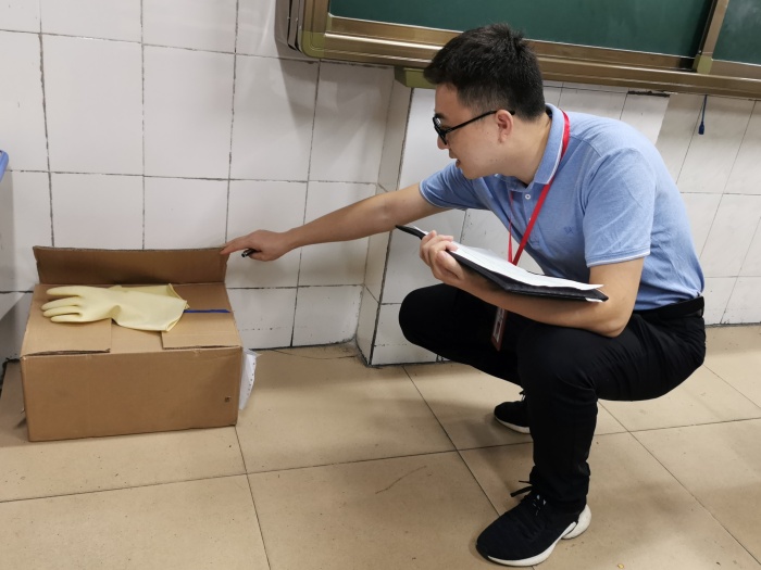 張立超督學首先認真查看了學校常態(tài)化疫情防控情況下的門禁制度,對落實情況非常滿意,聽取了朱德友校長關于校園內安全工作及疫情防控落實情況的介紹。他還走進教室實地查看了教室里防疫物資的準備情況,重點強調了教室里消毒粉的存放,一定要注意存儲安全,不能讓學生接觸到。