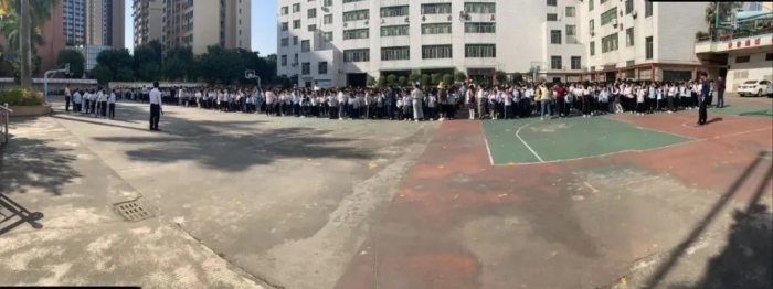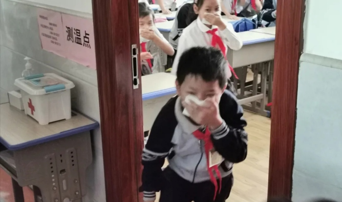 11月9日下午14點30分演練開始,隨著警報的響起,各位老師立即到達(dá)指定崗位,確保演練過程的安全,并指導(dǎo)學(xué)生有序快速疏散。各班班主任帶領(lǐng)學(xué)生根據(jù)演練方案中規(guī)定的路線,彎著腰,用濕紙巾或手等捂住口鼻,沿著學(xué)校指定樓梯口快速疏散,有序撤離到學(xué)校操場的安全地帶。