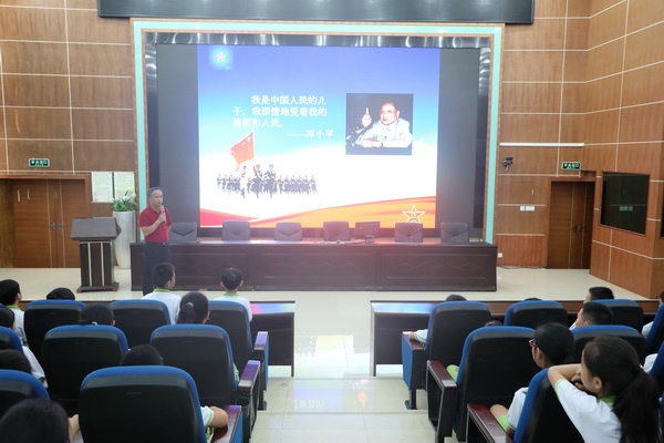 陳校長以鄧小平的一句話“我是中國人民的兒子,我深情地愛著我的祖國和人民”作為引入,向全體學生提出“弘揚愛國主義思想,做新時代有為青少年”的希望和要求。他從“了解我的祖國”、“為什么要愛國”、“在日常學習和生活中,我們小學生該如何愛國”等三個方面引導學生思考如何從優(yōu)秀榜樣的精神品格中汲取力量、思考如何度過有意義的學習生活,勇?lián)鷷r代使命等。陳校長講道,回望歷史,中華兒女歷來抱有振興民族家國情懷,有自強不息、艱苦奮斗的拼搏精神,有探求真理、好學力行的實踐精神。當前,實現(xiàn)中華民族偉大復興的中國夢是時代“最強音”,希望同學們學會感恩,感恩父母、感恩老師、感恩祖國、感恩現(xiàn)有的生活,要有家國情懷的境界、艱苦奮斗的作風、學以致用的目標、崇善尚美的心態(tài)。