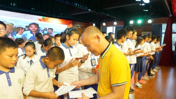 在典禮上,學(xué)生代表發(fā)表了感言,表達(dá)了他們的心聲。少先隊員代表向?qū)W校領(lǐng)導(dǎo)及六年級所有任課老師獻(xiàn)花、敬禮,教師代表陳一蕾和副校長沙泉源對即將離開母校的孩子們深情寄語,表達(dá)了對孩子們的美好祝愿。在《世界因你而美麗》的音樂伴奏中,沙校長為六年級每一位同學(xué)頒發(fā)畢業(yè)證書,祝賀全體六年級學(xué)生順利完成了小學(xué)的學(xué)習(xí)任務(wù),開始新的人生征程。