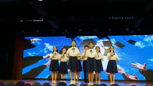 畢業(yè)典禮在六1班覃業(yè)斌同學(xué)的薩克斯演奏《送別》中拉開了序幕,接著六年級的學(xué)生代表帶來了精彩紛呈的表演:六2班馬筠嵐、張紫怡、劉鈺棟,六4班文岳、黃馨菲,六3班楊遵毅等同學(xué)帶著大家走進(jìn)了光陰的故事,一起回顧了六年來的點點滴滴;六4班的同學(xué)代表用吉他彈唱的形式表演了《童年》;六3班的同學(xué)獻(xiàn)上了歌曲《感謝》,感恩那些一直陪伴在身邊的家人、老師、同學(xué)朋友們;在離別之際,六2班的同學(xué)還朗誦了《老師,我想對您說》,再一次感謝老師們的關(guān)愛和無私付出。