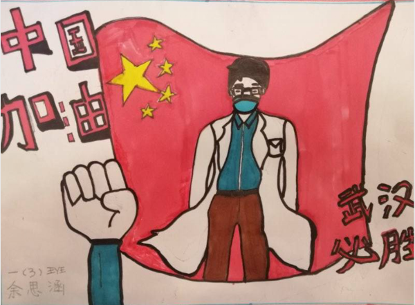 該校中隊輔導(dǎo)員在線上組織隊員們觀看疫情防控專題宣傳片《責(zé)任與擔(dān)當》《勝利召喚》《媽媽要去打怪獸》和中國教育報的專題報道“疫情期間請告訴孩子:你平安在家,因為有他們負重前行!”等,學(xué)習(xí)這些勇敢戰(zhàn)“疫”的平凡英雄們“勇敢拼搏、不畏犧牲”的英雄氣魄和“舍身忘死、大愛無疆”的模范精神,使隊員們深刻感受到“雷鋒”就在身邊,學(xué)習(xí)做“雷鋒式”的好人并不難?;顒幼詈螅w隊員用自己稚嫩的雙手為確診病人畫一幅畫或者撰寫一封信,向一線抗疫工作者們致敬,為武漢加油,為中國加油。