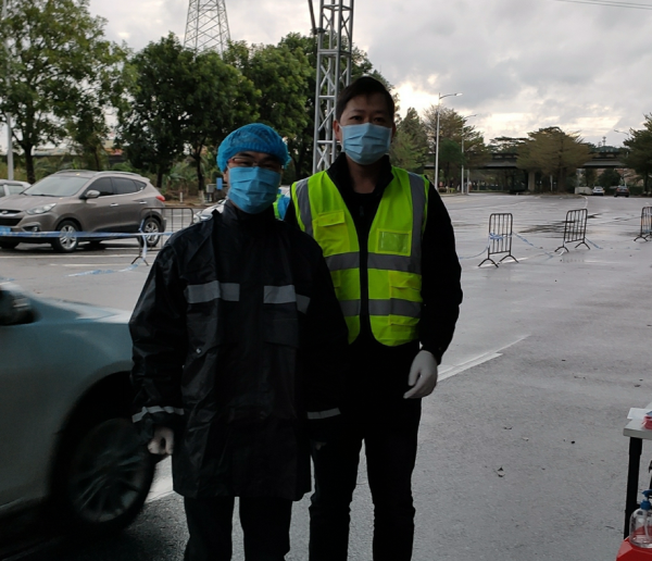 在黨員教師的帶動(dòng)下,該校鄭盛柱和林錦旺兩位老師主動(dòng)要求參加第二批次志愿者活動(dòng),在開發(fā)區(qū)各個(gè)重要路口配合交警部門進(jìn)行車輛的分流與車內(nèi)人員的體溫檢測(cè),對(duì)重點(diǎn)疫區(qū)的車輛與相關(guān)戶籍人員引導(dǎo)信息登記。不管暴雨大風(fēng),還是深夜凌晨,他們總是提前到崗,讓上一班工作人員準(zhǔn)時(shí)回去休息。由于防控工作繁重,連續(xù)幾個(gè)小時(shí)都顧不上喝上一口水,但他們也毫無(wú)怨言,因?yàn)樗麄兌加泄餐南M捍号ㄩ_,疫情過(guò)去,人民幸福安康。在第二批志愿活動(dòng)結(jié)束后,鄭盛柱和林錦旺老師再次申請(qǐng)成為第五批志愿者,每天不間斷巡查各物業(yè)小區(qū)門崗工作,制定情況匯總表,毫不松懈地筑牢物業(yè)小區(qū)“防疫墻”。