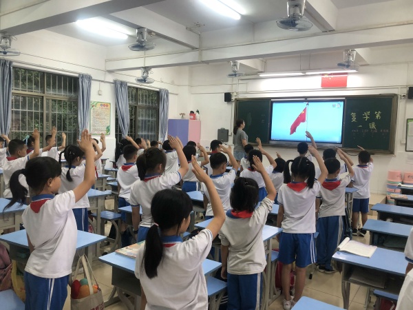 早上7:00,同學(xué)們陸陸續(xù)續(xù)踏進(jìn)校園,在老師和“大腳丫”的指引下,有序地回到了班級(jí)。8:50,胡校長(zhǎng)來(lái)到各班級(jí),向同學(xué)們派發(fā)復(fù)學(xué)禮物——書(shū)簽,勉勵(lì)同學(xué)們好好學(xué)習(xí),將來(lái)報(bào)效祖國(guó)。上午第一節(jié),班主任在教室內(nèi)組織進(jìn)行復(fù)學(xué)后的第一次升旗儀式。同學(xué)們面向國(guó)旗,敬隊(duì)禮,唱國(guó)歌。接著,一至三年級(jí)觀看復(fù)學(xué)第一課《天使歸來(lái),英雄開(kāi)講》,在視頻中感悟當(dāng)代國(guó)人的愛(ài)國(guó)情懷與責(zé)任擔(dān)當(dāng),致敬挺住風(fēng)雨的堅(jiān)強(qiáng)脊梁。隨后,班主任根據(jù)《在校一日生活指南》,指導(dǎo)同學(xué)們正確佩戴口罩和七步洗手法等個(gè)人防護(hù)知識(shí)。