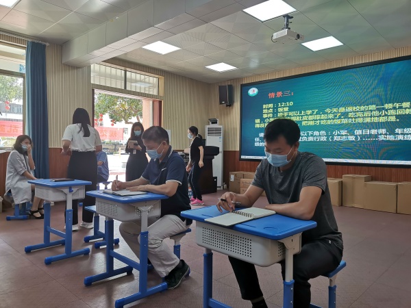 根據(jù)學(xué)校疫情防控演練方案,學(xué)校各部門對演練流程進(jìn)行詳細(xì)的部署與分工。在演練前組織全員進(jìn)行培訓(xùn)學(xué)習(xí),讓各教職工明確演練的角色和職責(zé)。本次演練認(rèn)真模擬學(xué)校復(fù)學(xué)后在校情景,分別為進(jìn)出校門、教室上課、辦公室辦公、樓道嘔吐、上體育課和班級欺凌六個場景。除此之外,還增加了搶答環(huán)節(jié),讓全體教職工在輕松的氛圍中鞏固應(yīng)急預(yù)案的重要細(xì)節(jié)。會后,胡冬梅副校長和區(qū)教辦領(lǐng)導(dǎo)對演練過程進(jìn)行小結(jié)。既肯定了實戰(zhàn)狀態(tài)下疫情工作小組和各分工小組的協(xié)調(diào)配合能力、快速反應(yīng)能力,同時對各小組演練環(huán)節(jié)中存在的不足進(jìn)行了提醒,并提出相應(yīng)的改進(jìn)措施。