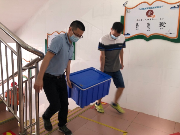 8時整,在德育處與教導處共同精心安排下,各班級觀看”復學第一課“,學習”疫情防控期間在校一日生活指南“。他們在老師的組織下舉行了簡單而莊嚴的升旗儀式。接著,老師們圍繞“科學防控”“心理疏導”“擔當成長”等主題進行授課……上午課程結(jié)束后,由男教師組成的“送餐志愿服務(wù)隊”忙而不亂,為四、六年級孩子送餐;五年級跟隨班主任排隊到飯?zhí)镁筒汀?/p>