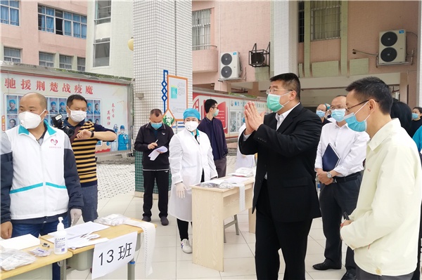 期間,正在學校出席火炬區(qū)2020春季學期學生復學工作座談會的市委副書記、區(qū)黨工委書記陳文鋒同志,來到現(xiàn)場看望了工作人員。