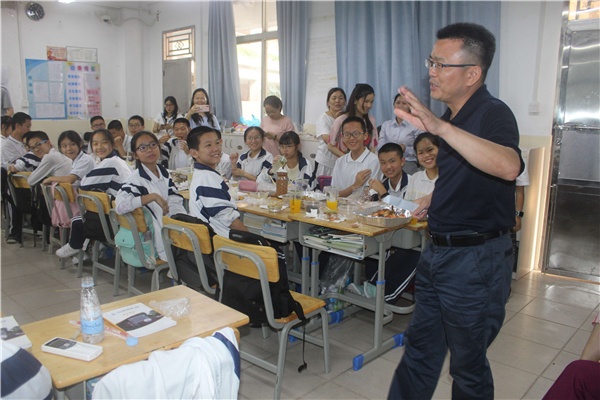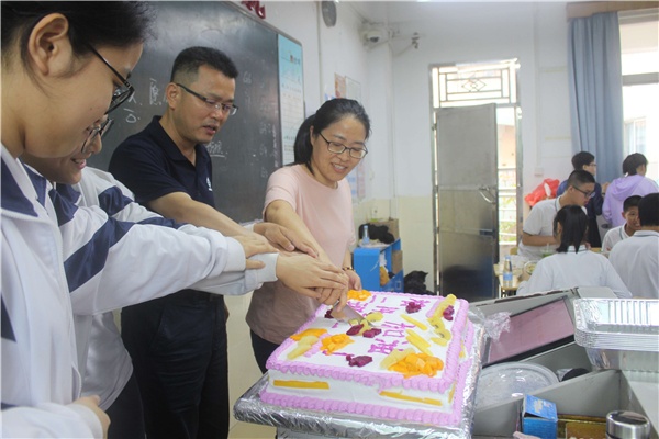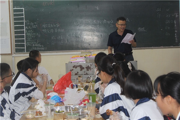 2019年5月13日,開發(fā)區(qū)一中校長劉利民在初二(14)班參加了該班學(xué)期中段表彰慶祝會,就校長信箱咨詢事宜當(dāng)面回復(fù)了學(xué)生,并和學(xué)生一起為該班5月出生的同學(xué)慶生,為地理生物中考鼓勁,大家開誠布公暢談校園生活,釋疑解惑,其樂融融。