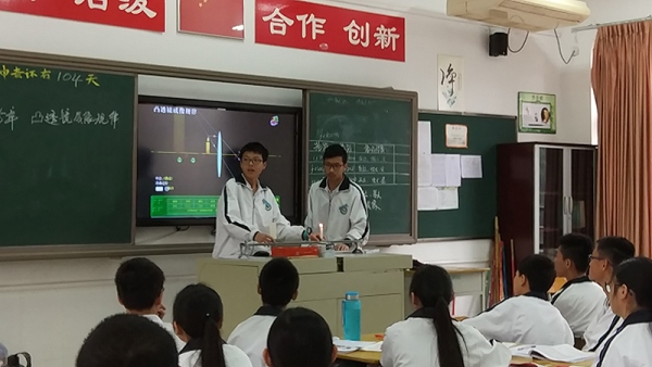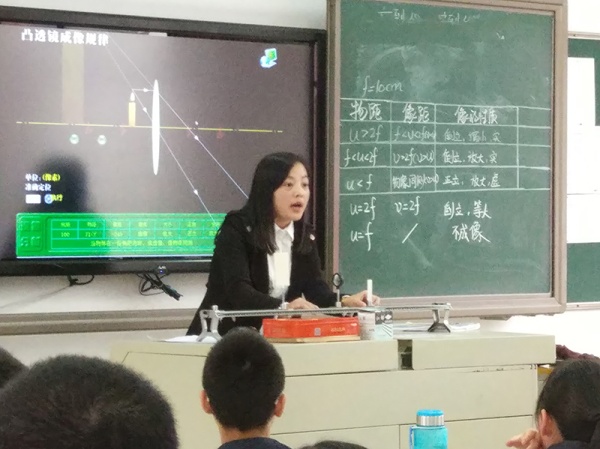 研討活動首先由紀(jì)雅學(xué)校的劉麗娜老師上了一節(jié)“凸透鏡成像規(guī)律”復(fù)習(xí)課?!巴雇哥R成像規(guī)律”是教學(xué)章節(jié)中比較難理解的一個知識點,歷來是中考的重要考點。課堂上,劉老師熟練運用“小組合作 雙模合一”的教學(xué)模式來組織教學(xué),首先通過學(xué)生自主學(xué)習(xí)、組內(nèi)交流、組間展示等環(huán)節(jié)解決了對基礎(chǔ)知識的復(fù)習(xí),然后再組織學(xué)生的現(xiàn)場實驗演示,再現(xiàn)了凸透鏡成像的幾大規(guī)律,借用實際觀察,非常巧妙地引導(dǎo)了學(xué)生對成像規(guī)律的理解和有效記憶。最后,劉老師又通過質(zhì)疑環(huán)節(jié),由多組學(xué)生展示、解釋了幾個實驗中的難點,進一步落實了“凸透鏡成像規(guī)律”的知識學(xué)習(xí)。整個教學(xué)過程,學(xué)生始終是學(xué)習(xí)活動的主體,課堂學(xué)習(xí)氣氛輕松、活躍,非常高效地完成了教學(xué)。