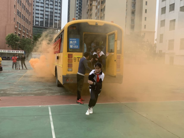 全體師生集合后,俞希金老師從校車危險(xiǎn)產(chǎn)生的原因和危害性講解了校車安全應(yīng)急逃生演練的重要性和必要性。并就應(yīng)對(duì)校車突發(fā)事故的逃生知識(shí)、方法和實(shí)際操作要領(lǐng)做了講解。并進(jìn)行校車突發(fā)事故逃生演練:演練校車在行駛過(guò)程中突然起火,車內(nèi)、車外濃煙滾滾,校車駕駛員熄滅油門,打開(kāi)車門,跟車教師組織車上的學(xué)生捂住口鼻,有序跑向安全地帶,成功疏散集中后,由跟車教師清點(diǎn)人數(shù)。